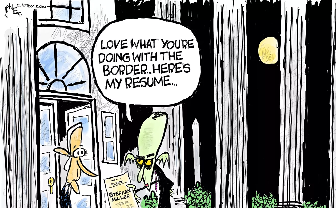 In a sickeningly sweet voice, he said, "Oh, do you have a problem with illegals around here?"