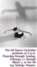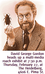 Gordon will discuss little-known tidbits about roach biology, such as where the world's 4,000 species live, their favorite chow, how they sing for their suppers and the role of roaches in the arts, not to mention the lurid details of their steamy little love lives. More than you wanna know? Perhaps. But it's always wise to be well-acquainted with your enemies, and now's the chance to rub exoskeletons with the most insidious of them. Free lecture is at 7:30 p.m. in The Heidelberg, 4606 E. Pima St. For information, call 883-3945. MYTHIC MOVEMENT. The UA Dance ensemble springs into action tonight with John Dahlstrand's Sunken Cathedral, based on the timeless myth of an island off the coast of France that was submerged due to the impiety of its inhabitants. Performances tomorrow and Saturday include Balanchine's Tchaikovsky Pas de Deux. Sunken Cathedral is performed at 8 p.m. today, and 2 p.m. Saturday; Tchaikovsky Pas de Deux at 8 p.m. Friday and Saturday, in the UA Gittings Dance Theater. Tickets are $8, $5 for students and seniors, available at the door or in advance from the UA Fine Arts box office. For details, call 621-1162.