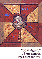 Apparatus Gallery Features The Works Of Seven Local Innovators. By Margaret Regan APPARATUS GALLERY HAS been plugging away for more than a year now, showing paintings and photographs along with quirky handmade crafts in a renovated building down in the Lost Barrio on South Park, a district better known for folk art and furnishings than for fine art. Right now, tucked among the gallery's hand-painted saws ("Idle Hands" is a charming painted hell-on-a-hand saw, complete with devil and flames, by a team called Boss/Brown), metallic knickknacks and glass tables, there's a show of 21 paintings by seven lesser-known Tucson artists. Put together by owner-operator Sharon Holnback, a photographer, the exhibition is organized around no particular theme. But it adds up to a freewheeling survey of the divergent practices in local painting. There's pleasant, loose abstraction (William Wheelan) and funky, urban symbolism (Kelly Morris), pattern painting (Simon Donovan) and landscape (Sarah Kucerova), serious metaphysics (Jo Andersen) and lurid op-art colorations (Gene Hall).