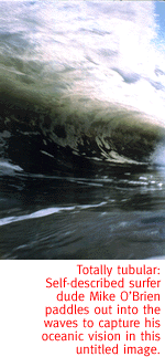 O'Brien, a self-described surfer dude, rides out on his surfboard