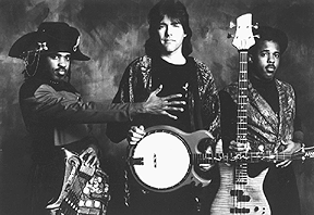 Cutline: Picking a winner: Banjo virtuoso Béla Fleck and Flecktones Victor Wooten (bass) and Future Man (percussion) push instrumentation to its outer limits.