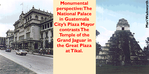 But having traveled a great distance at some expense to escape the pressures of urban living, we're anxious to get out of the city as quickly as possible and on to the Mayan ruins in the national park at Tikal, in the north-eastern area called El Petén.