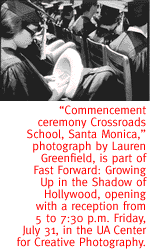Greenfield has a knack for revealing the impact of Hollywood's values on the everyday lives of young people in Los Angeles. Her photos show a society of precocious and independent youths who seem influenced by the same "cult of image" that imbues the adult world in that city--motivated by appearance, materialism, obsession with fame, and the fast life. These are kids with unrestricted freedom, often lacking parental supervision, where a high premium is placed on sophistication and exhibiting behaviors that belie their ages. "You grow up really fast when you grow up in L.A.," says one of Greenfield's subjects. "L.A. is so fast-moving, and kids really mature at a young age. It seems like everyone is in a rush to be an adult. It's not so cool to be a kid."