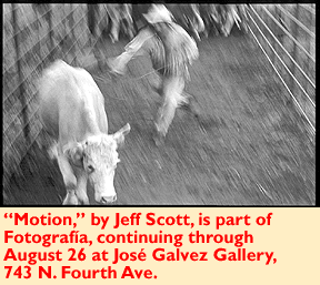 Fotografía continues through August 26 at José Galvez Gallery, 743 N. Fourth Ave. Regular gallery hours are noon to 4 p.m. Wednesday through Friday, Downtown Saturday Nights and by appointment.