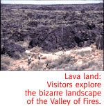 Hot Times In New Mexico's Valley Of Fires. By Kevin Franklin ICE CAVES? THERE are ice caves out there?" I ask, looking out across the forbidding black lava flow stretching into the distance. Heat waves from the summer sun shimmer across the flow's long-ago solidified surface. "There are a couple of them," says Cheryl Sparks, a volunteer for New Mexico's Valley of Fires Natural Recreation Site. "The blue of the ice in the caves is indescribable. It's bluer than ocean blue," she adds.