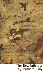 For a while, particularly during the '80s, this style was heralded by editors and publishers as "the new narrative"--a poetry that, for their bottom line, looked so much like prose that, well, maybe it would sell like prose. And if you think I'm just being cynical, recall that this new narrative--embryonic in the '70s and bursting into life in the '80s--came of age during a time when young writers like Tama Janowitz, Bret Easton Ellis, and Jay MacInery were plotting a bold new course for contemporary American fiction. It's no surprise that publishers of poetry, continuing to suffer from "prose envy," were quick to champion a version of poetry cast in the image of their obsession. What makes Barbara Cully's The New Intimacy such a joy, then, is that from the first page on it's poetry that looks, feels, and sounds like poetry. These are not diary entries broken up into bits, nor a re-associated list of the banality of her purse. Here is language itself at work, simultaneously layering image onto meaning onto image in a fashion beyond fiction or even the best cinema. It's a flight unique to poetry: Several versions/(doves caught in the frescoed reeds)/vie for ascendance/Adam's tent as tentative negotiation between the sea and the sky/as opulent casino/as the machete of his nomadic heart embossed on the [blank]-teenth century grandeur of the city (from "Museum Frieze"). Be forewarned: This is the poetry your mother warned you about. You won't find the performance-oriented wailings of Maggie Estep or Lydia Lunch; but Cully's is a poetry no less subversive at every level. The New Intimacy, selected by Carolyn Forche for the 1996 National Poetry Series, shares many of Forche's fin de millenaire ("end of the millennium") concerns. But by far, The New Intimacy spends most of its time in the psychological (and physiological) states of longing and remembrance. In this, The New Intimacy spins with the sort of millennial vertigo we might expect at the end of one thousand years and the beginning of another. And while many of the poems soar across the page with a liberty unique to poetry, the apprehension Cully prepares us for is a difficult one: one in which divisions between nations, cultures, genders, the self, become malleable, more capable of giving way to more accurate--though no less beautiful or bizarre--renderings of ourselves. To know what it is to make love as a man and as a woman is special knowledge, he said/In the open trees, there is no one o'clock, there is no two o'clock/Soon the body itself disappears as a distinct kingdom, (from "Nureyev").