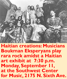 Tucson's top acoustic blues talent brings down the house from 5 to 9 p.m. at the Southwest Center for Music, 2175 N. Sixth Ave. Tickets are $5 at the door, $3 for TBS, TKMA and KXCI members. Call 884-1220 for information.