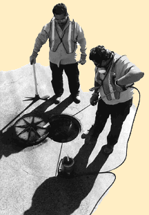 You have my vote: Gas the little darlings. Roaches scare me. As a result, I believe anyone who kills them is heroic. It was, then, with mixed feelings that I set out on a cloudy morning to cruise manholes with several members of Vector Control. Nervous about creeping things, I put up my hair and wore heavy clothing. The roach-killers, on the other hand, looked relaxed. They work in pairs, wearing county-issued wrap around glasses, safety orange vests and respirators. These are guys. Of the around 40 sewer-maintenance workers, only one is female; according to Decker not many women apply for the job.
