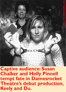 The rhetoric spewed from the mouths of the Christian right in Jane Martin's play, Keely and Du, now playing at Damesrocket Theater, enrages those who believe every woman is capable of making a decision on her own. But the audacity of one human being to take charge of another human being's life in the name of the Lord is more than enraging, it's frightening.