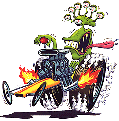 In any case, the wonderful Rat Fink-ish drag race artwork on Del Noah's Big Sounds Of... seven-inch vinyl EP should clue one into the turbo-charged sounds inside. The liner notes say it all: "Drop your phonograph needle on this record and experience the sounds and smells of nitromethane 'pop' exploding in the belly of an Enderle-supercharged 392 Chrysler Hemi mill...the aroma of composite rubber burning off a set of M&H Racemaster slicks!"